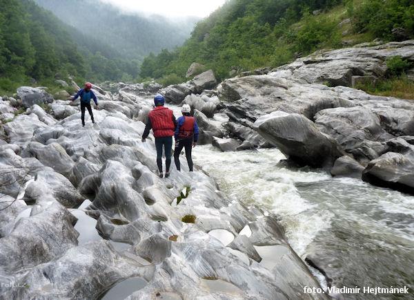 Jeli jsme to na pálavě ze Srednegorci k ďáblovu mostu, nebezpečné, nečitelná voda (kal), ostré šutry ...