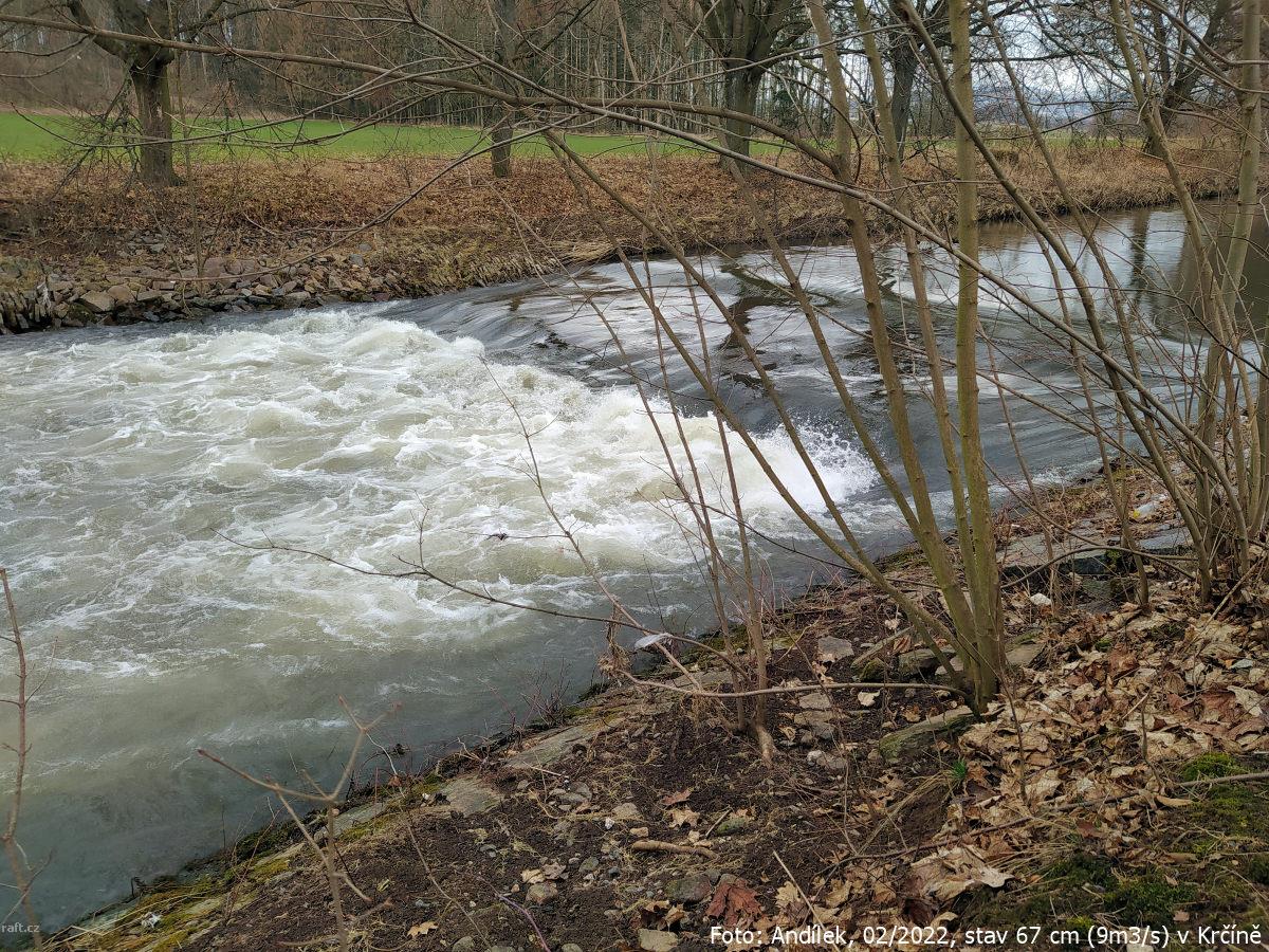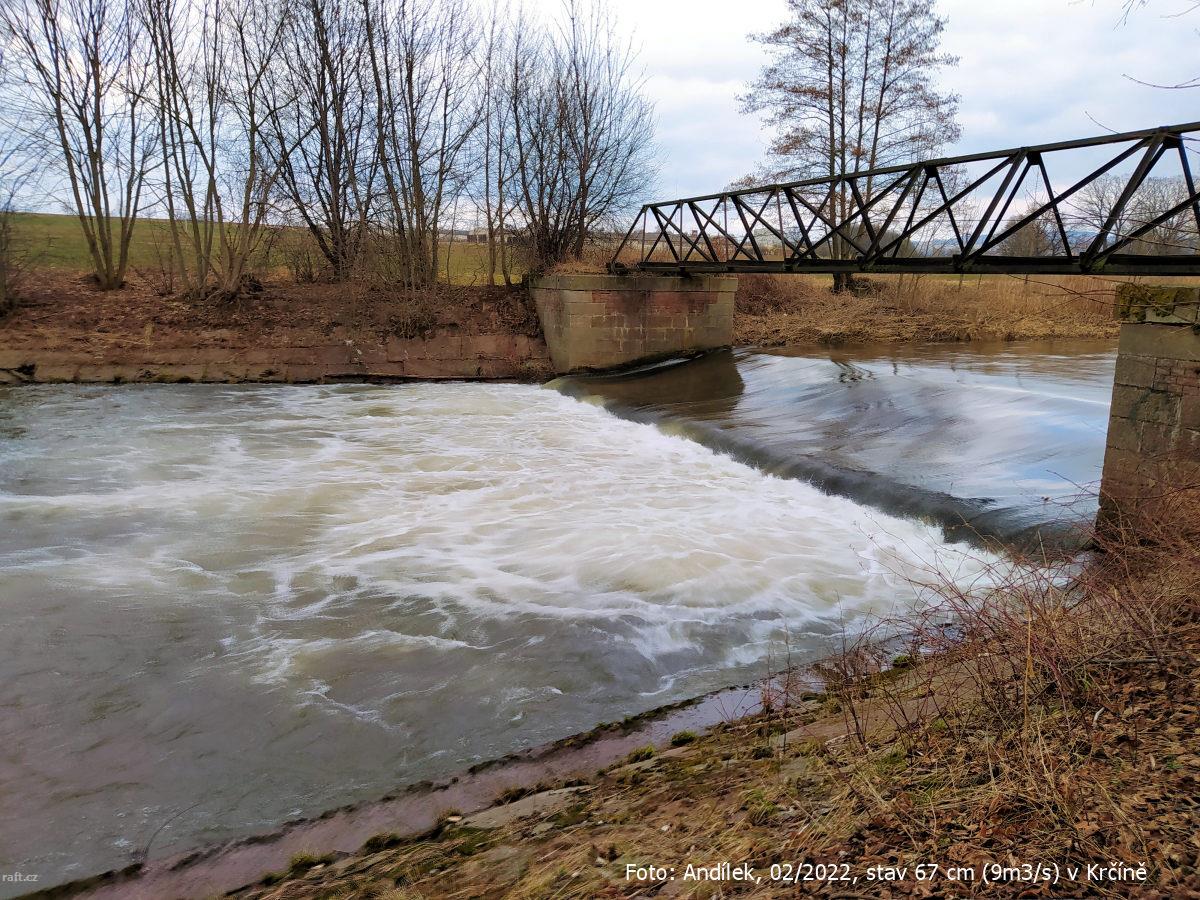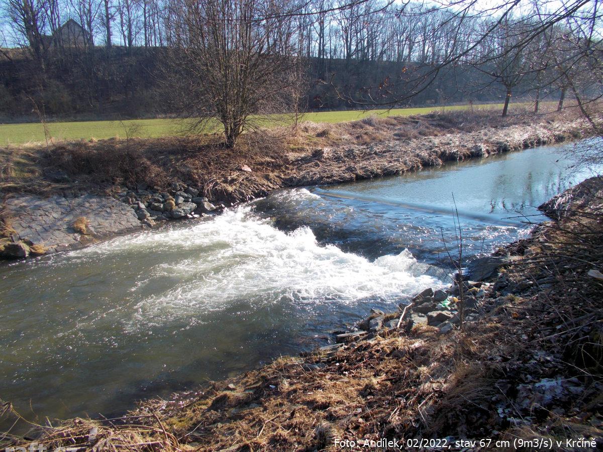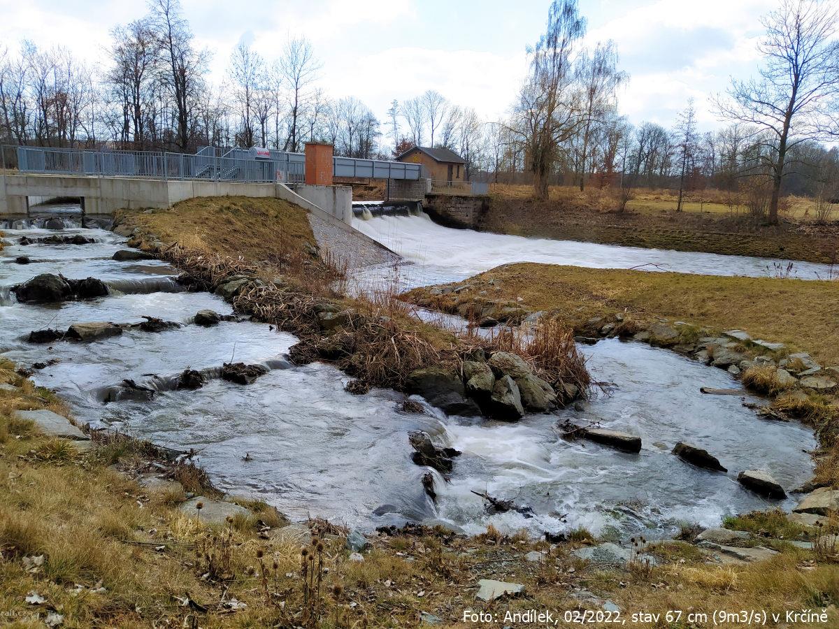 r.km 54,2 Jez u Velkých Petrovic, stav: 78 cm, 6.15 m3/s na vodočtu v Maršově