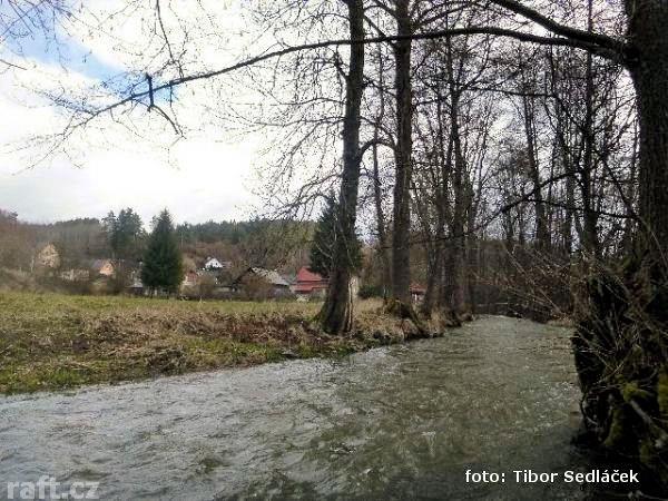 Stav vody cca 67 cm a 3,3 kubíků v Chocnějovicích dne 5.4.2009. Pod Rychnovem se střídají meandry s ...