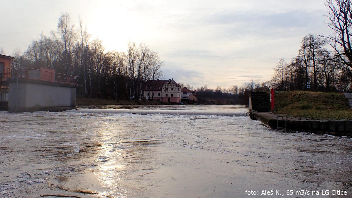 r.km 54,0 Jez Jiráskovy mlýny, 18.4.2021, 29 m3/s na LG Louny