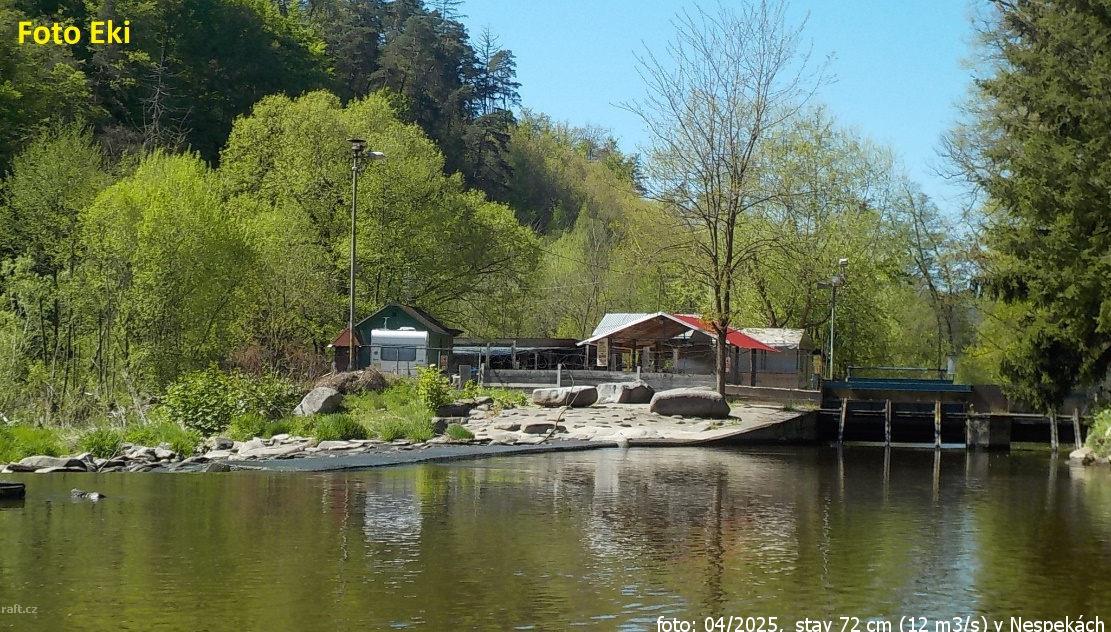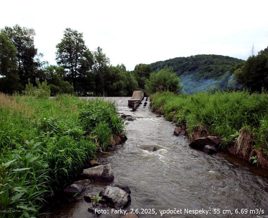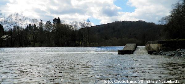 Jez Podělusy je zcela opravený a průjezdný sportovní šlajsnou u pravého břehu. Před šlajsnou jsou ka ...