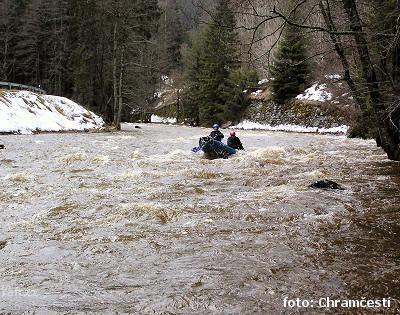 Spluto od ústí Pramenského potoka za stavu 75 cm na LG Podhora. Moc hezký zážitek, rychlá voda. Nejo ...