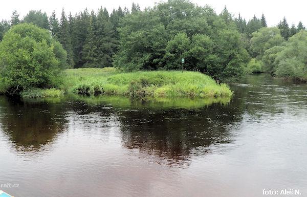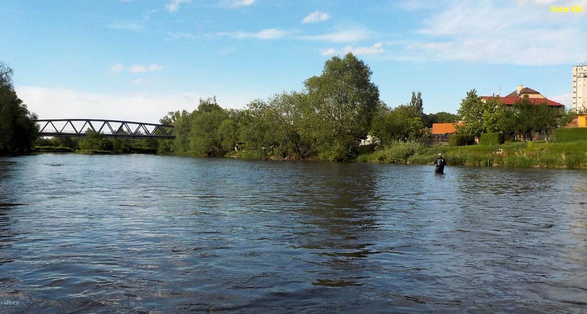 V Praze pod Šítkovským jezem těsně vedle Dětského ostrova, jak je chodníček a jetelné místo, trčí z ...