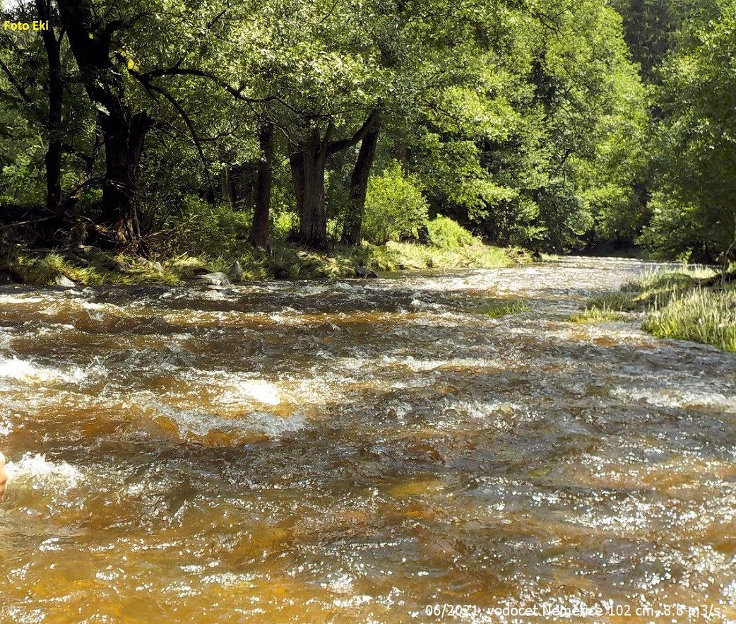 V nedeli 8.8. po destich krasnych 10kubiku (ale k veceru uz jen 6,5), velkou cast vody dodaval potok ...