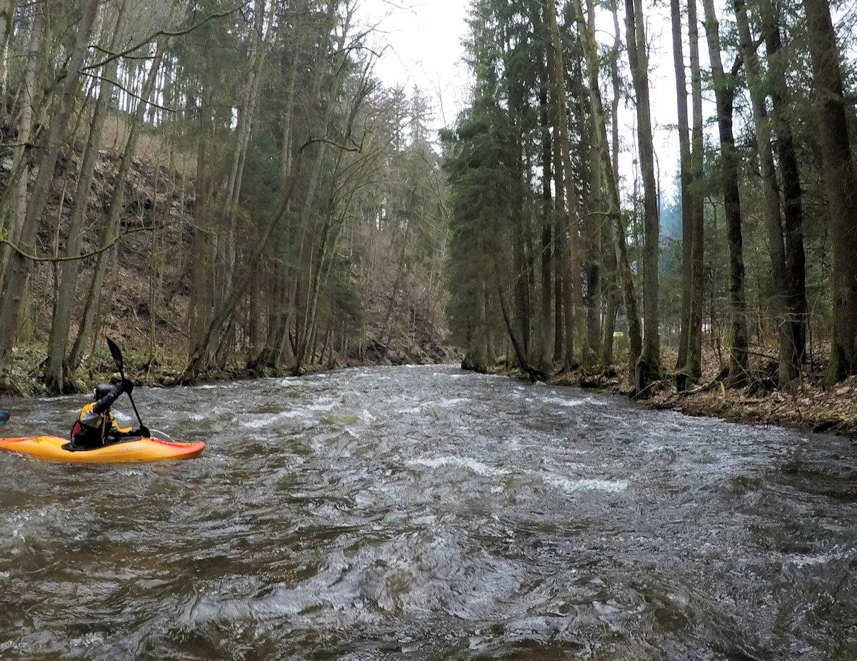 V úseku 1km nad soutokem s Říčkou je několik padlých stromů a zátaras ze stromů a klacků. Přenášení ...