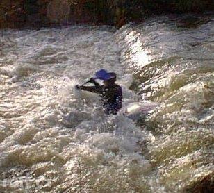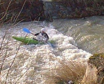 Červen 2010 po povodních - pod Kyžlířovským mlýnem v peřeji s balvanem uprostřed vlevo v techničtějš ...