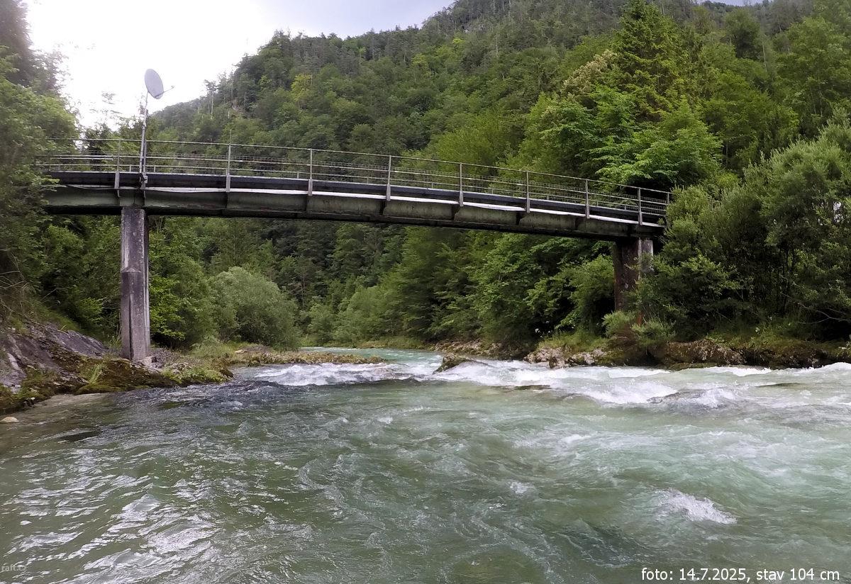 Asi dva kilometry před Steyrbrucke po přejetí peřeje pod mostkem za zatáčkou uprostřed řeky balvan z ...