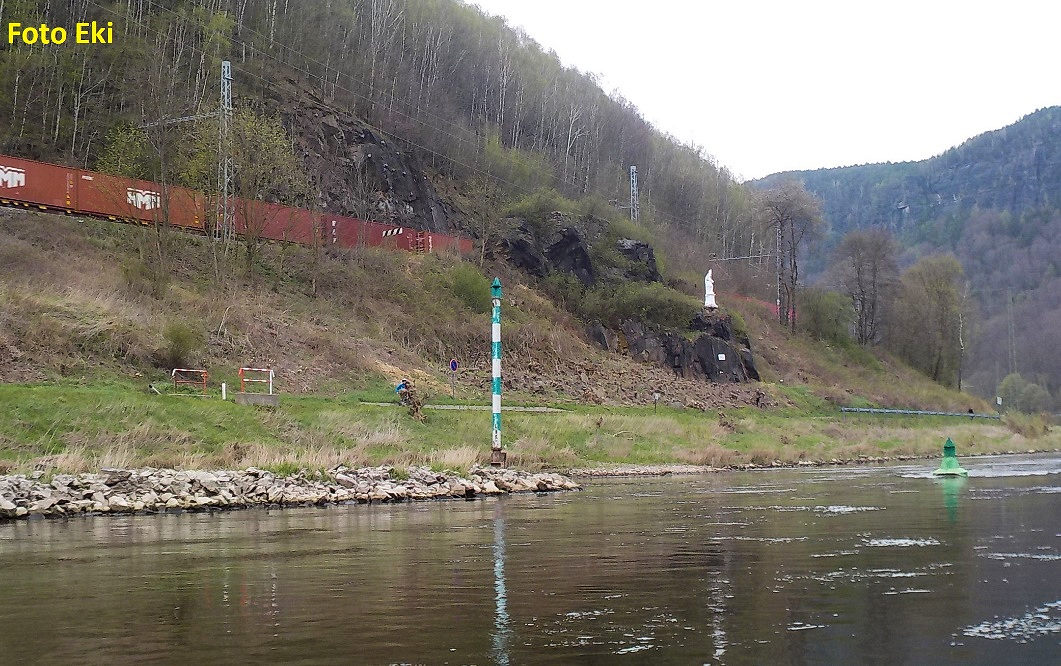 726,6 státní hranice s Německem (115 m n. m.), dále teče pod názvem Elbe, v plavbě je možné pokračovat až do Drážďan, pro mořské kajaky vhodný terén Foto na rkm 726,6 Státní hranice ČR (GPS: 50.8912228, 14.2302003)
