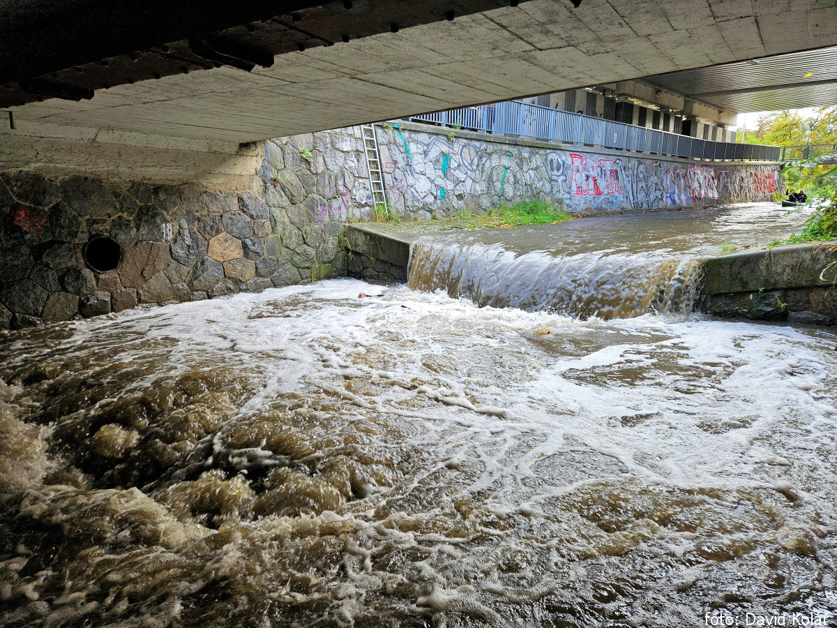 začátek regulovaného bet. koryta weir drop height (m) 0.5 bridge road Jižní spojka 0,1 km (GPS: 50.0555578,14.4797864) |