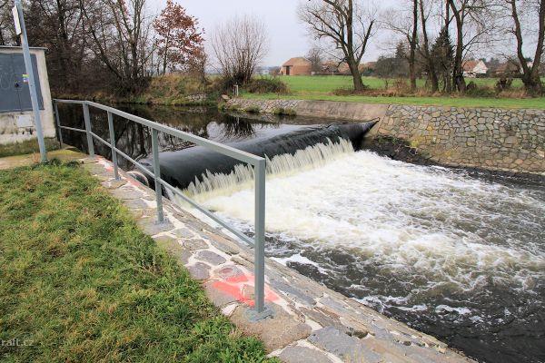 r.km 30,4 hráz vyrovnávací nádrže Svídnice - pozor na trčící roxory červeně označené!