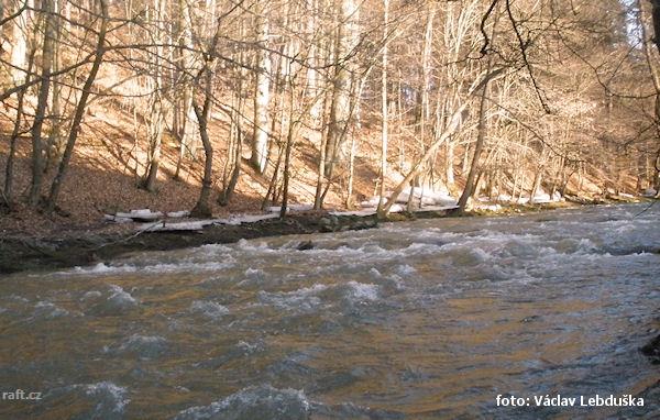 Mezi Ronovem a Žleby 2 padlé stromy přes celou šířku řeky. První strom je možné podplout vlevo. Pod ...