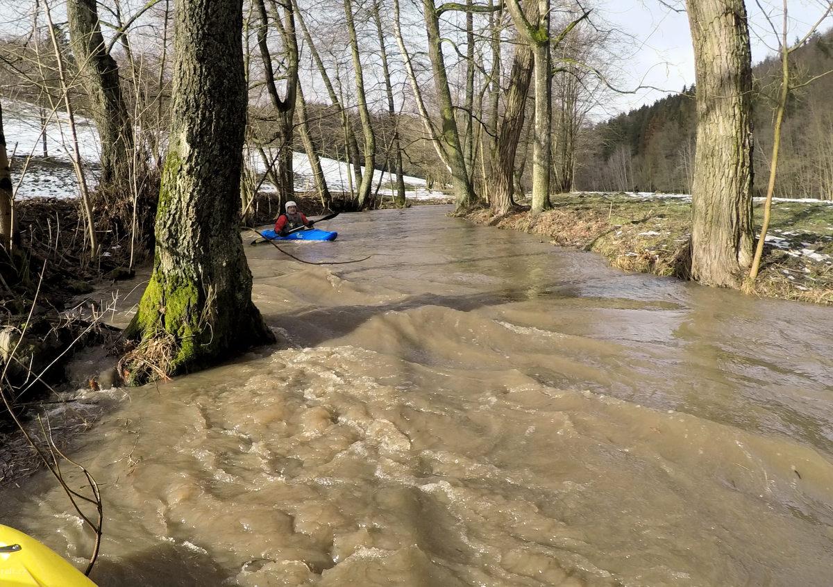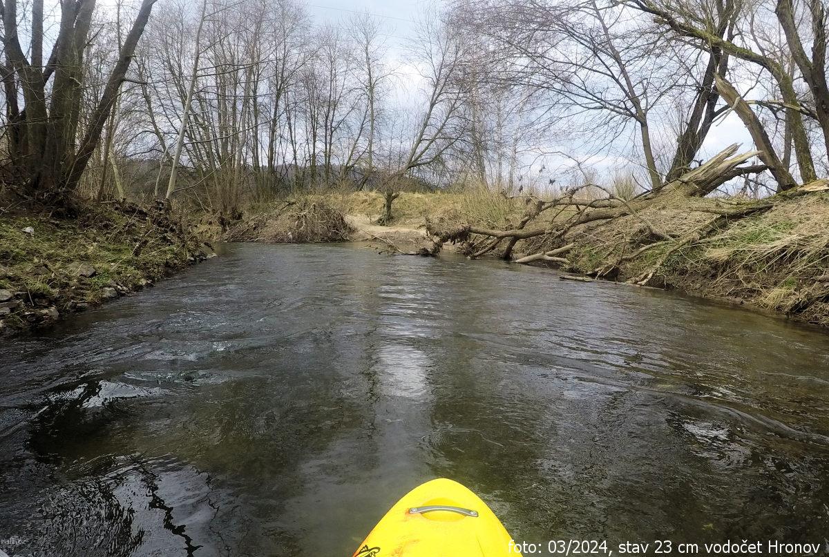 Mezi km 31,7 a 28,1 jsou 2 padlé stromy přes celou řeku,