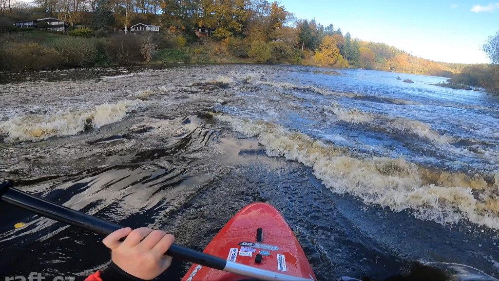 8.5.019 - pod žichovickým jezem to dře i prázdnou nafukovačku. Nepostrádá někdo loď? Asi 1,5 km nad ...