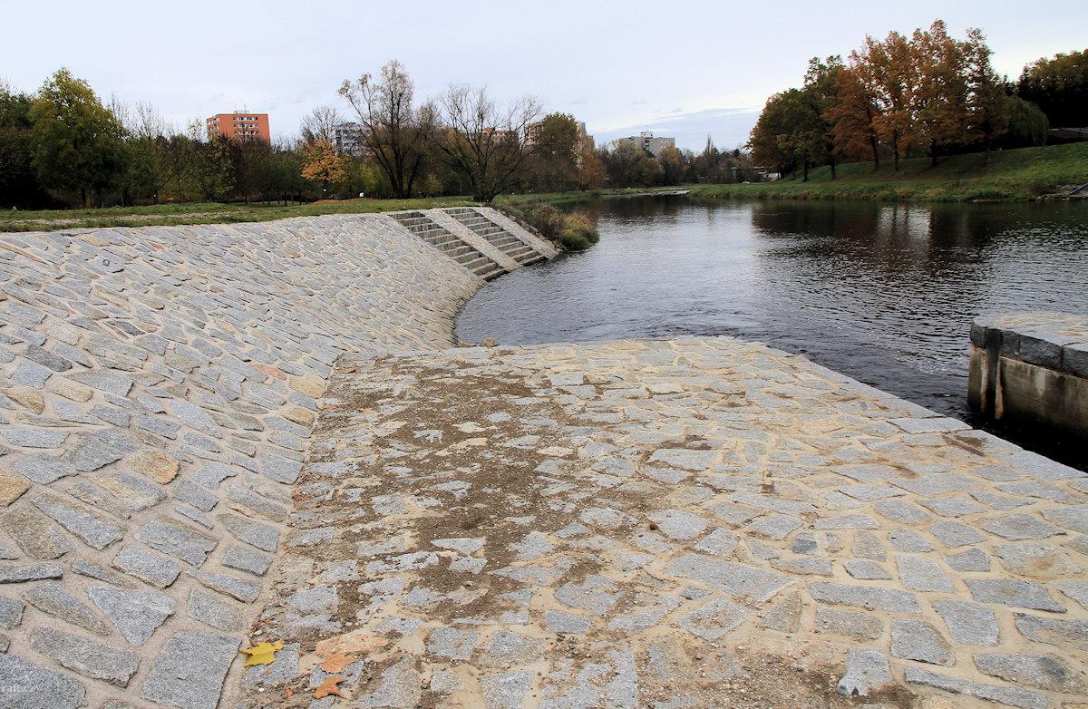 Z důvodu přestavby je koruna jezu v celé šíři snížena (odbourána ...