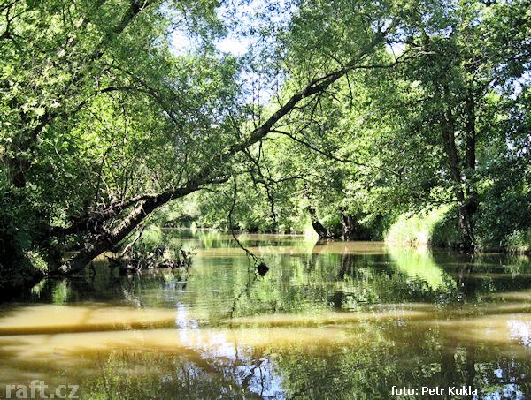 Jez Podělusy je v rekonstrukci a nelze sjet. Řeka je zde zatrubněna a vzniklo potenciálně nebezpečné ...