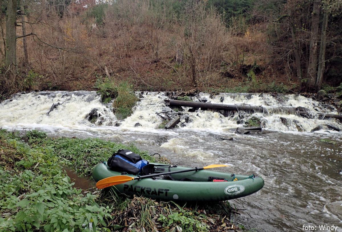 Jez Podělusy je v rekonstrukci a nelze sjet. Řeka je zde zatrubněna a vzniklo potenciálně nebezpečné ...