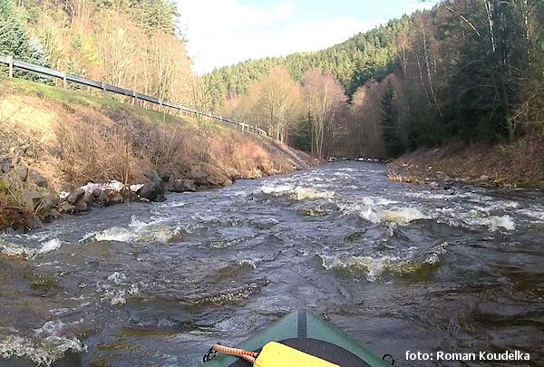 Spluto od ústí Pramenského potoka za stavu 75 cm na LG Podhora. Moc hezký zážitek, rychlá voda. Nejo ...