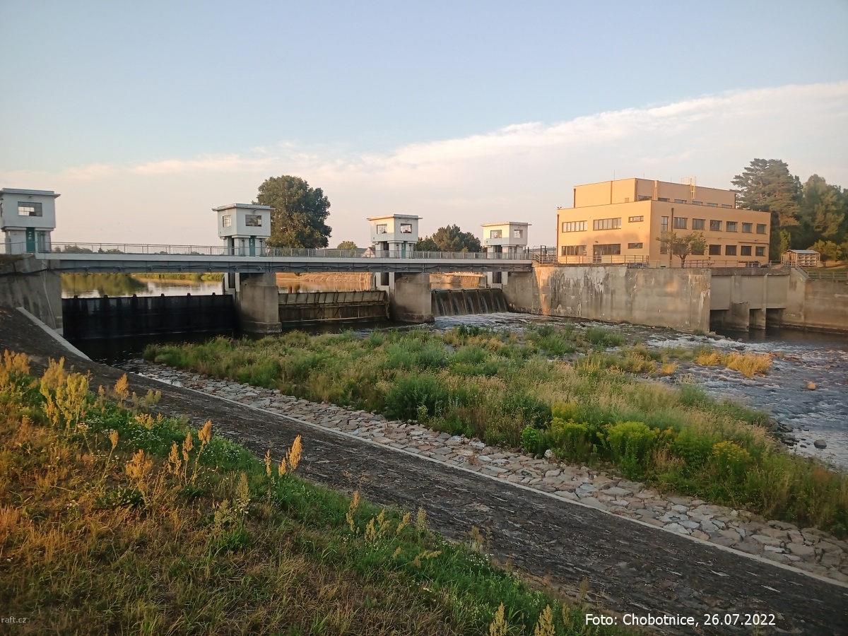 268,0 jez Templ, na jezu probíhá rekonstrukce, voda svedena do původně odlehčovacího ramene, sjízdné ...