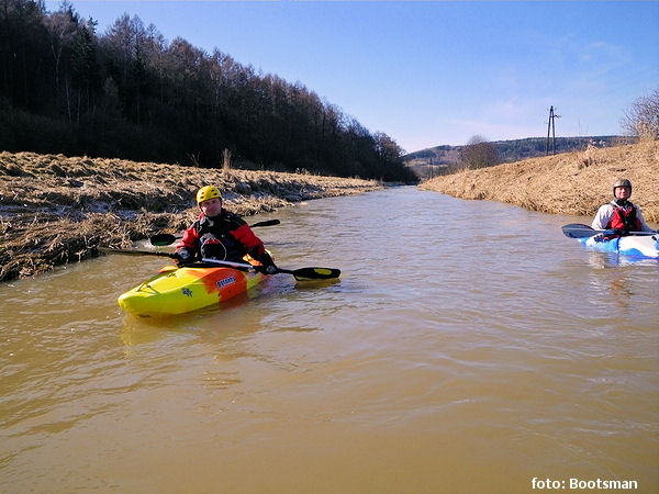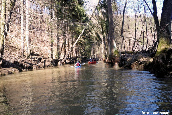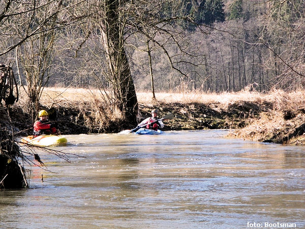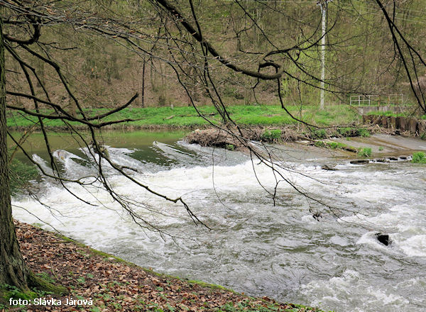 weir canal long 400 m - lze jet rovně náhonem a po 300 m odlehčovacím kanálem zpět do řeky 0,6 km |