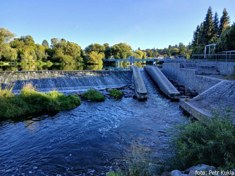 rkm. 19,5 Jez Řevnice s rybím přechodem a vodáckou šupnou za 9 m3/s v Berouně, 7/2020