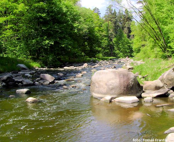 Těsně za km 5 (vlevo velký patník) leží v řece strom (lze ho objet úplně zprava). Druhý strom je o c ...