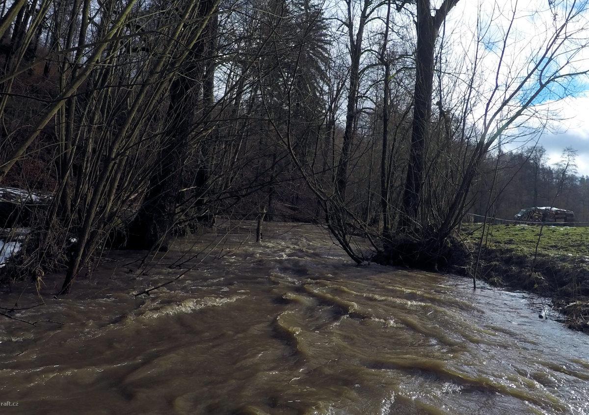 Mezi km 31,7 a 28,1 jsou 2 padlé stromy přes celou řeku,