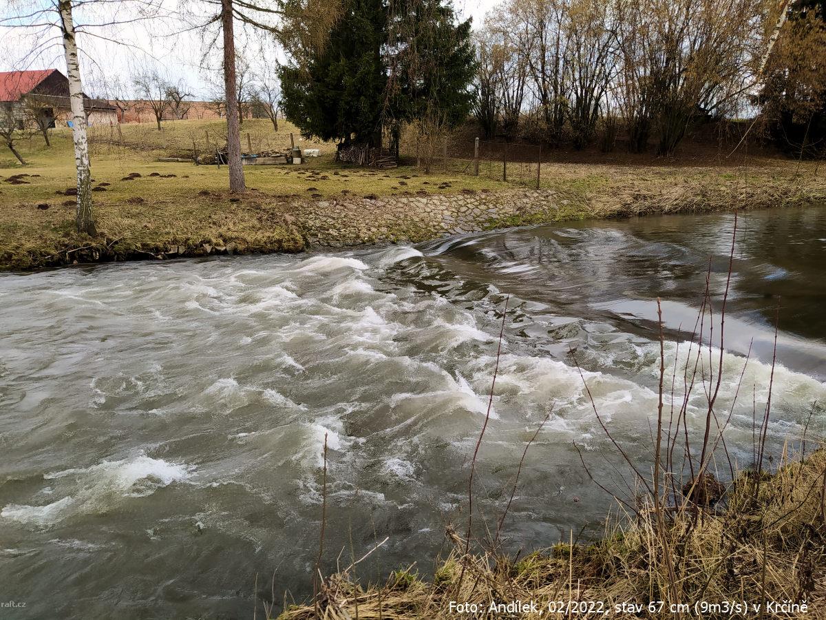 r.km 54,2 Jez u Velkých Petrovic, stav: 78 cm, 6.15 m3/s na vodočtu v Maršově