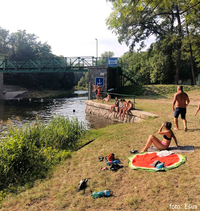 weir portage right height (m) 2,6 impassable, (1 km dlouhé přenášení přes most, okolo jezu jsou vysoká břehová křídla) Terezín 0,1 km |