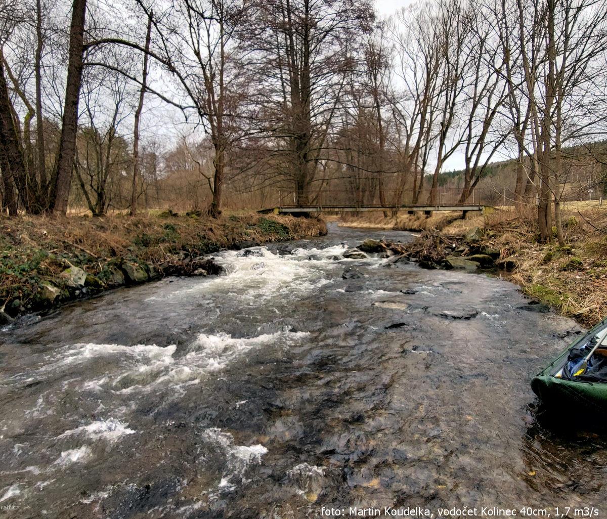 16.4.2023 úsek ústí Radvanického potoka - most u nádraží Kolinec (9km) za stavu 55cm = 5m3. Všechny ...