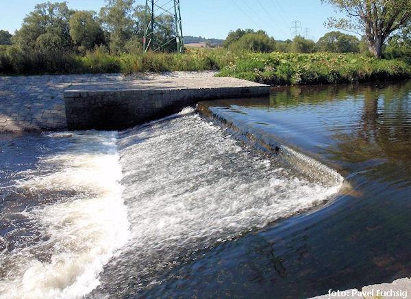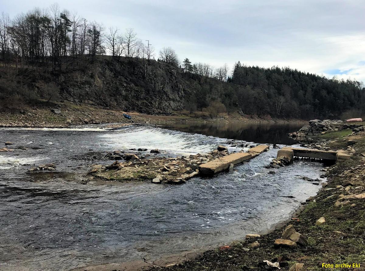Z důvodu přestavby je koruna jezu v celé šíři snížena (odbourána ...