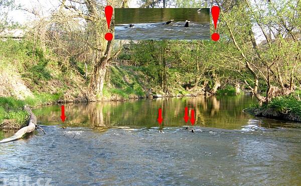 Ve Staňkově za jezem (53,0) je šedý most (52,9) ...