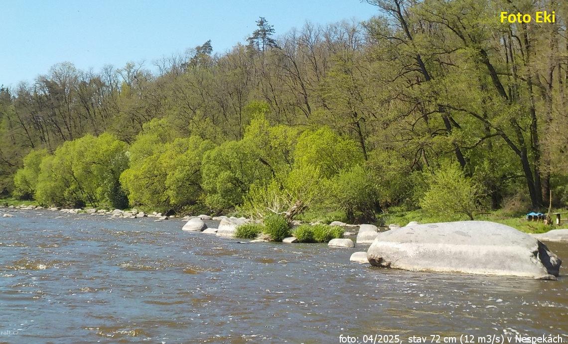 Jez Podělusy je zcela opravený a průjezdný sportovní šlajsnou u pravého břehu. Před šlajsnou jsou ka ...
