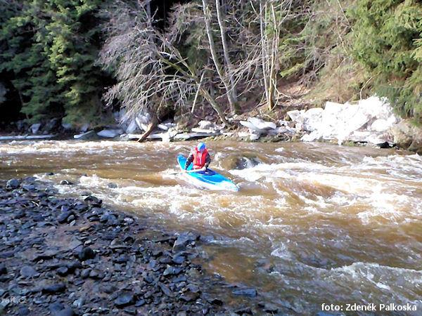 Spluto od ústí Pramenského potoka za stavu 75 cm na LG Podhora. Moc hezký zážitek, rychlá voda. Nejo ...
