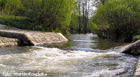 r.km 68,0 Poborovice - jez 22.3.2020, MZP= 1,02 m3/s, spád jezu je 1,95 m