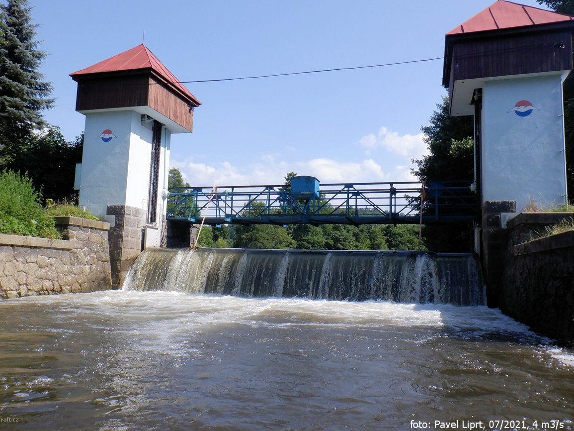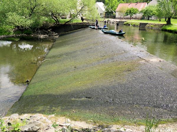 r.km 71,5 Pevný, přímý jez, dlouhý 29,39 m. Jez je ostrůvkem rozdělen na dvě části