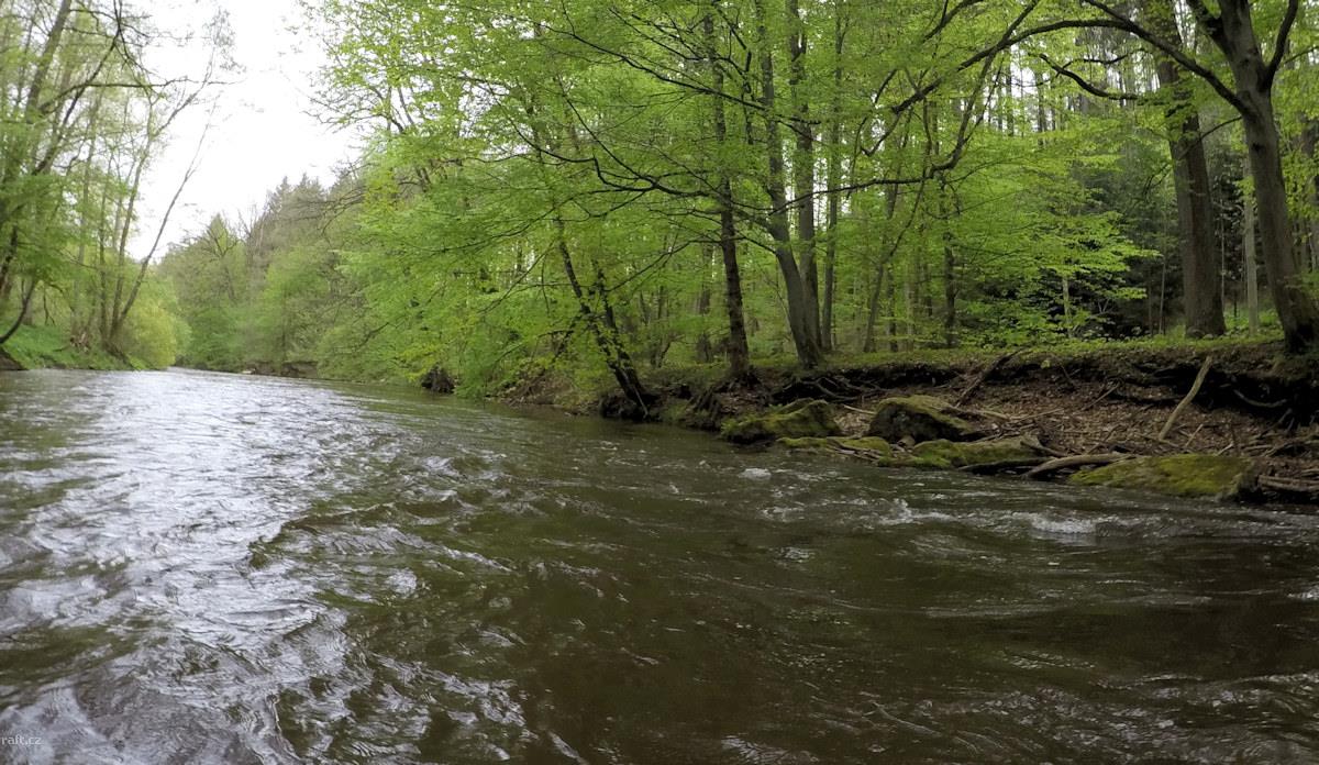 Dne 20. dubna - ještě parádní plavba, Slatina 65 cm, ale asi 1 km pod Rýzmburkem napříč celým řečišt ...