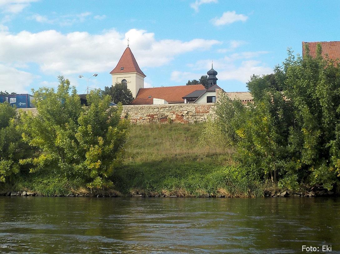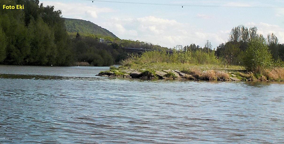 V Praze pod Šítkovským jezem těsně vedle Dětského ostrova, jak je chodníček a jetelné místo, trčí z ...