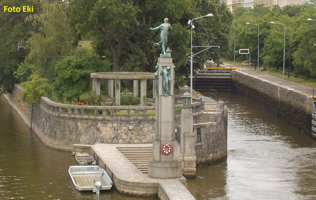 weir with right sluice portage right height (m) 3,4 impassable, pohyblivý PK left, slalomový kanál WW II - IV right, Hotel (pension) hostel cp camps vp 0,8 km (GPS: 50.1119792,14.4276664) |