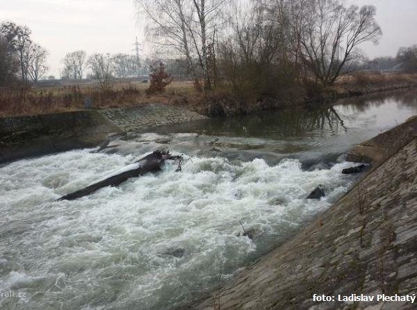 r.km 85,3 Nebezpečný jez u odbočení Kyjovky