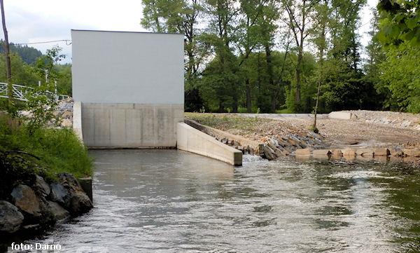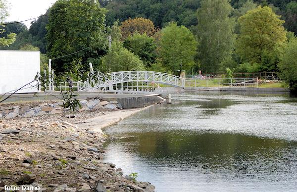 jez Bohdíkov, na koruně jezu je nově klapka, vpravo náhon do MVE a pod ním rybí přechod už poměrně b ...