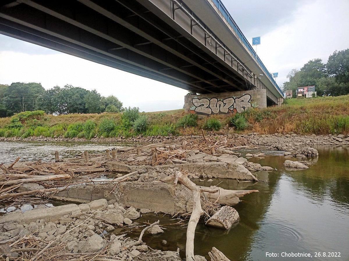 Pozor km 305,6 až 302,5 je řeka naprosto bez vody!