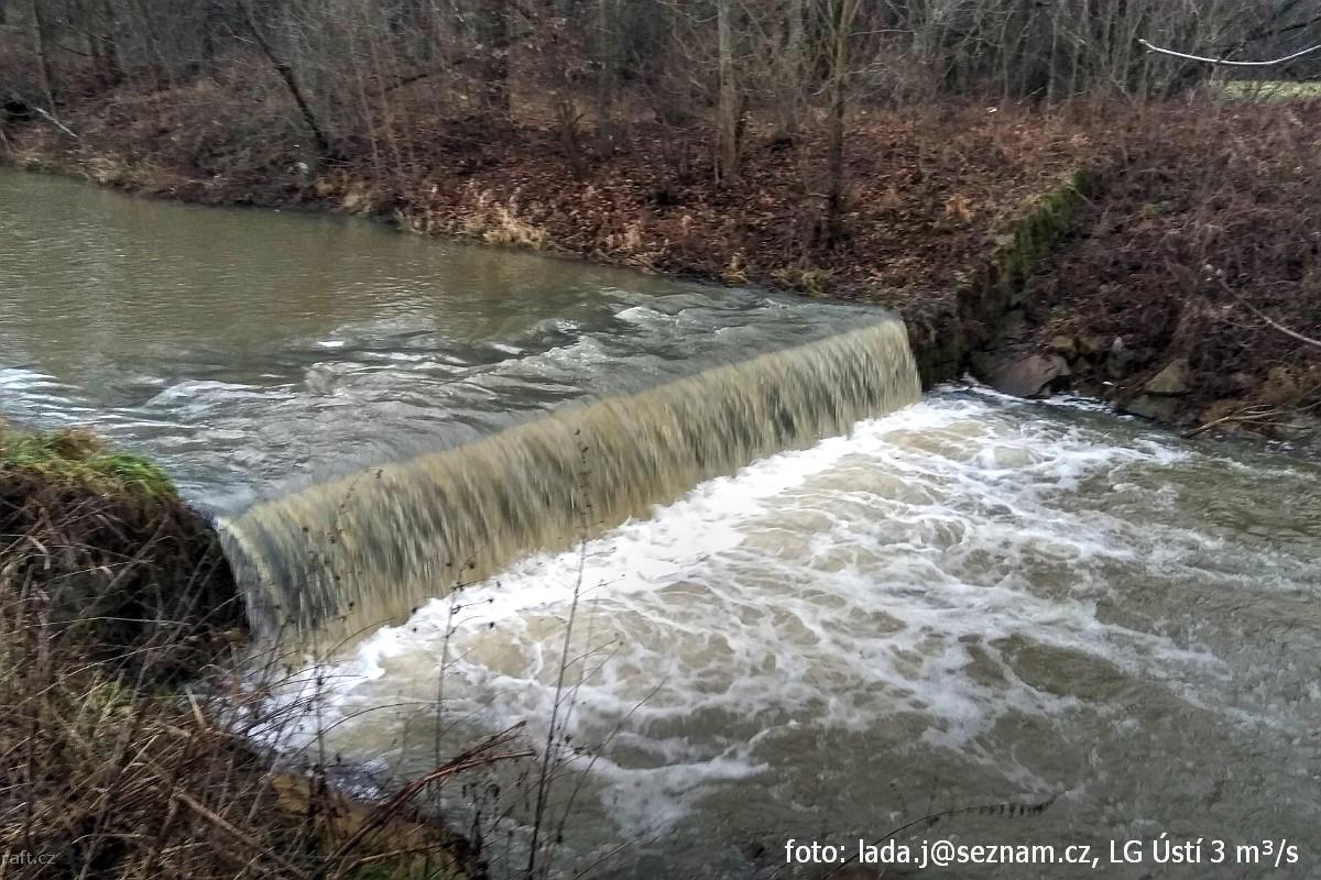 r.km 1,1 Stupeň, vodočet Ústí 106 cm a 5,8 cbm/s