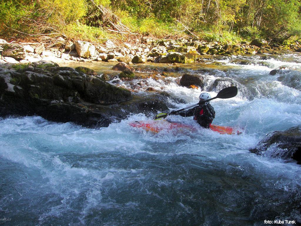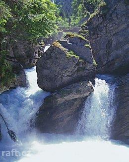 Asi dva kilometry před Steyrbrucke po přejetí peřeje pod mostkem za zatáčkou uprostřed řeky balvan z ...